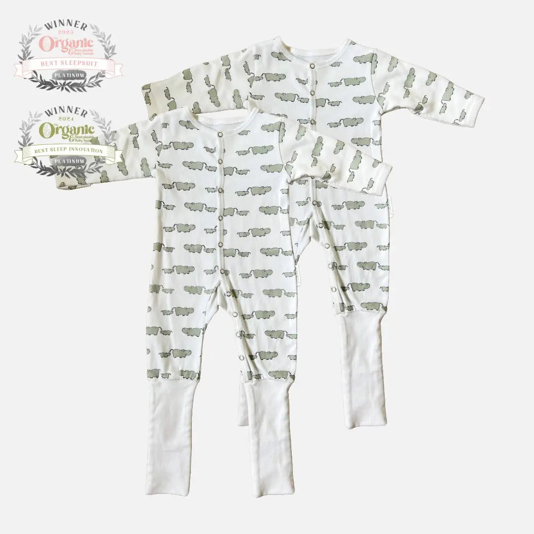 Winter Sleepsuit With Padded Sleeves (2pk) - Hippo