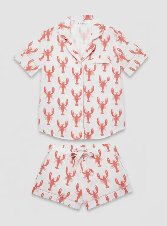 Red Lobster Women's Short Sleeve Organic Cotton Pyjama Short Set