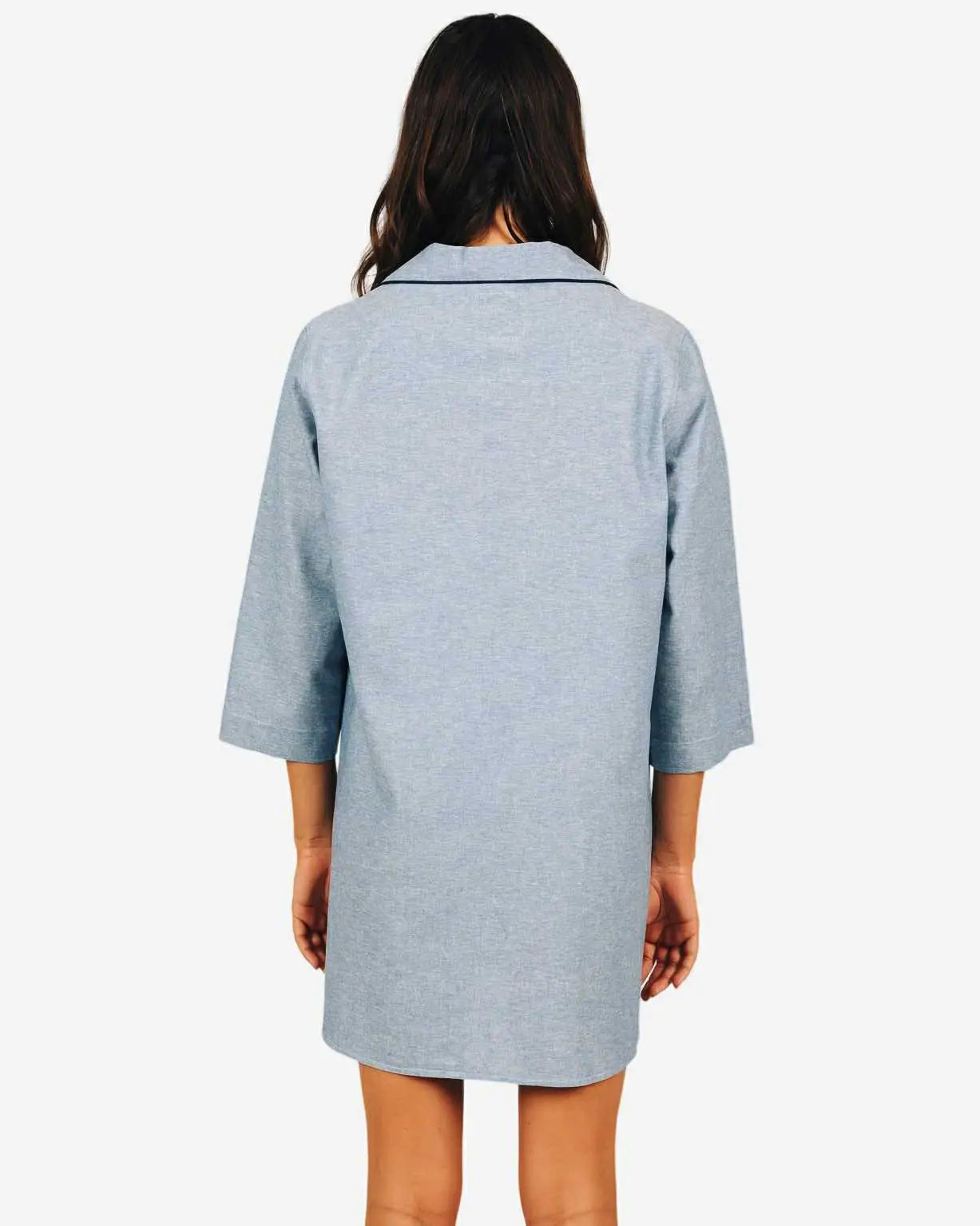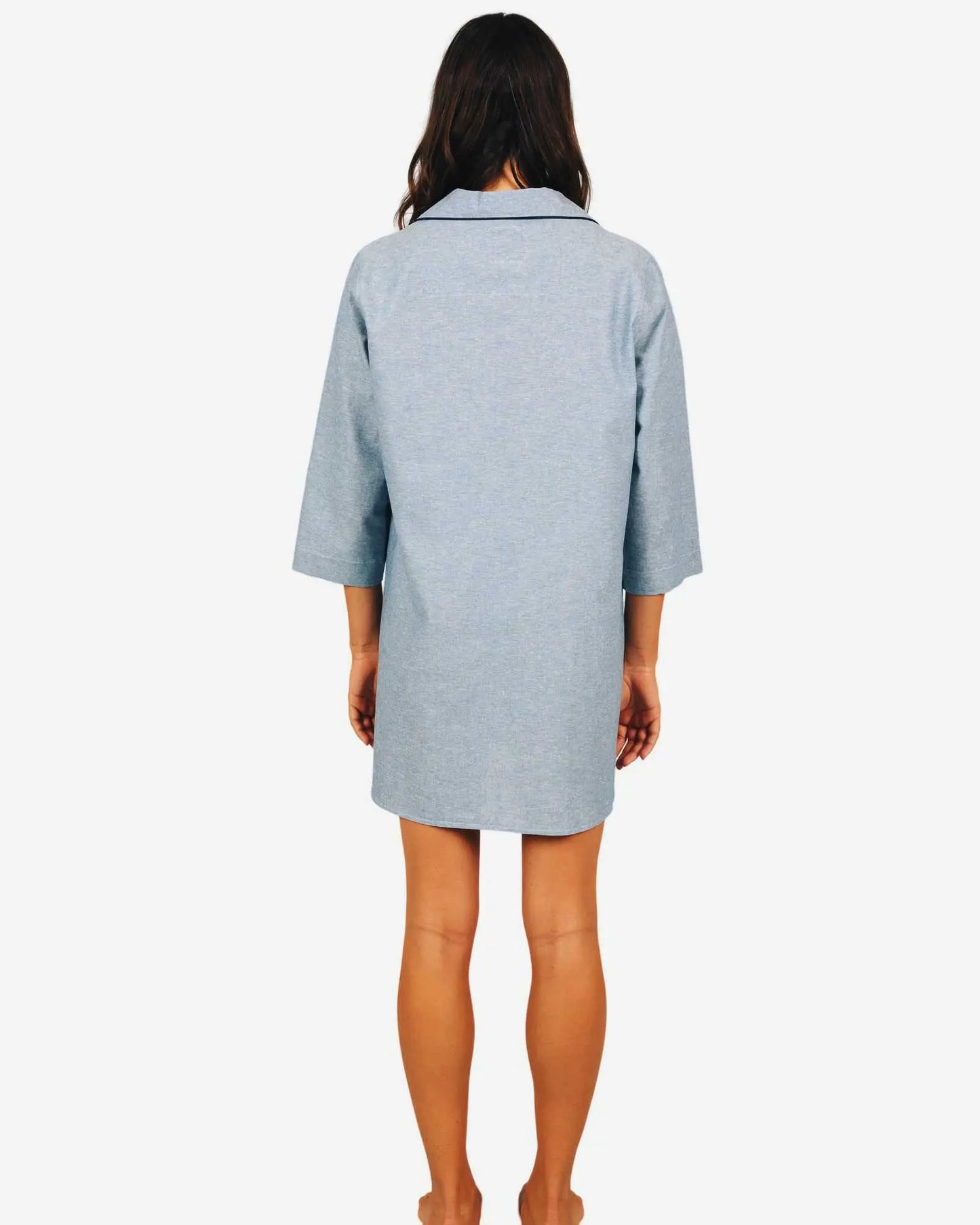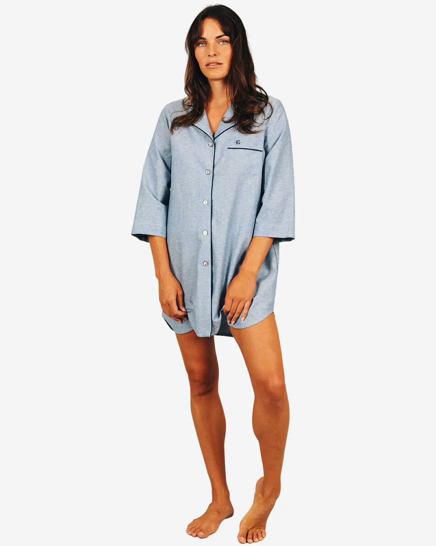 Women's Sleep Shirt - Blue Sky with Navy Piping