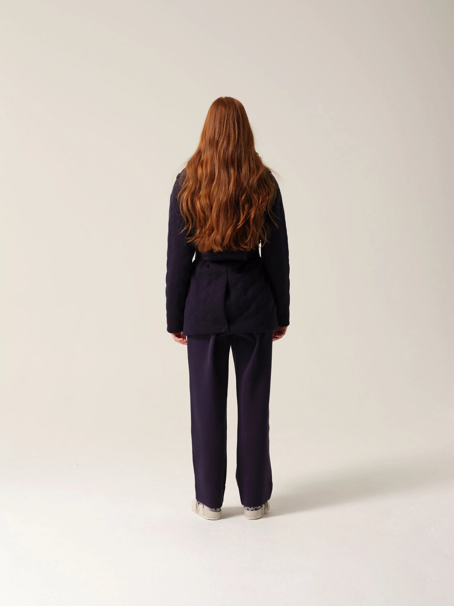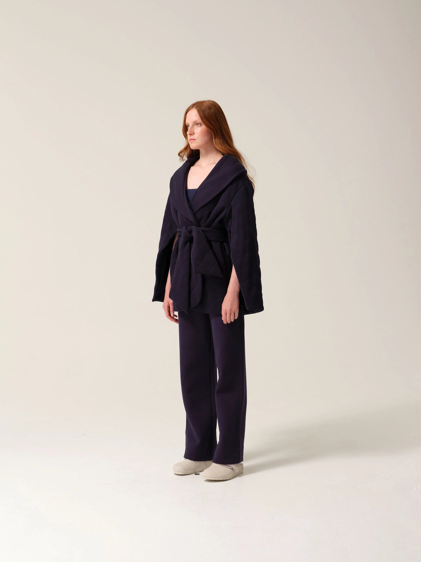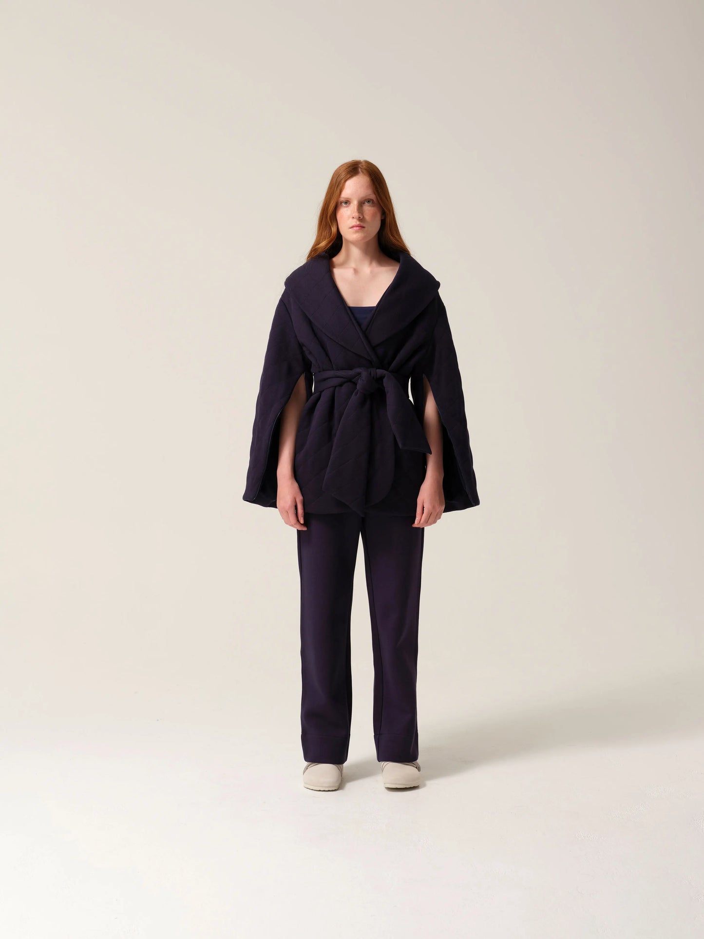 The Treatment Suit Jacket is crafted for warmth, access, and quiet confidence. It has silk lining, quilted padding and smart zips at the arms for easy access to ports and treatment lines. The wrap-style jacket is stitched at the back for comfort in the treatment chair, while the flat-front trousers feature a side zip to avoid pressure on the abdomen.