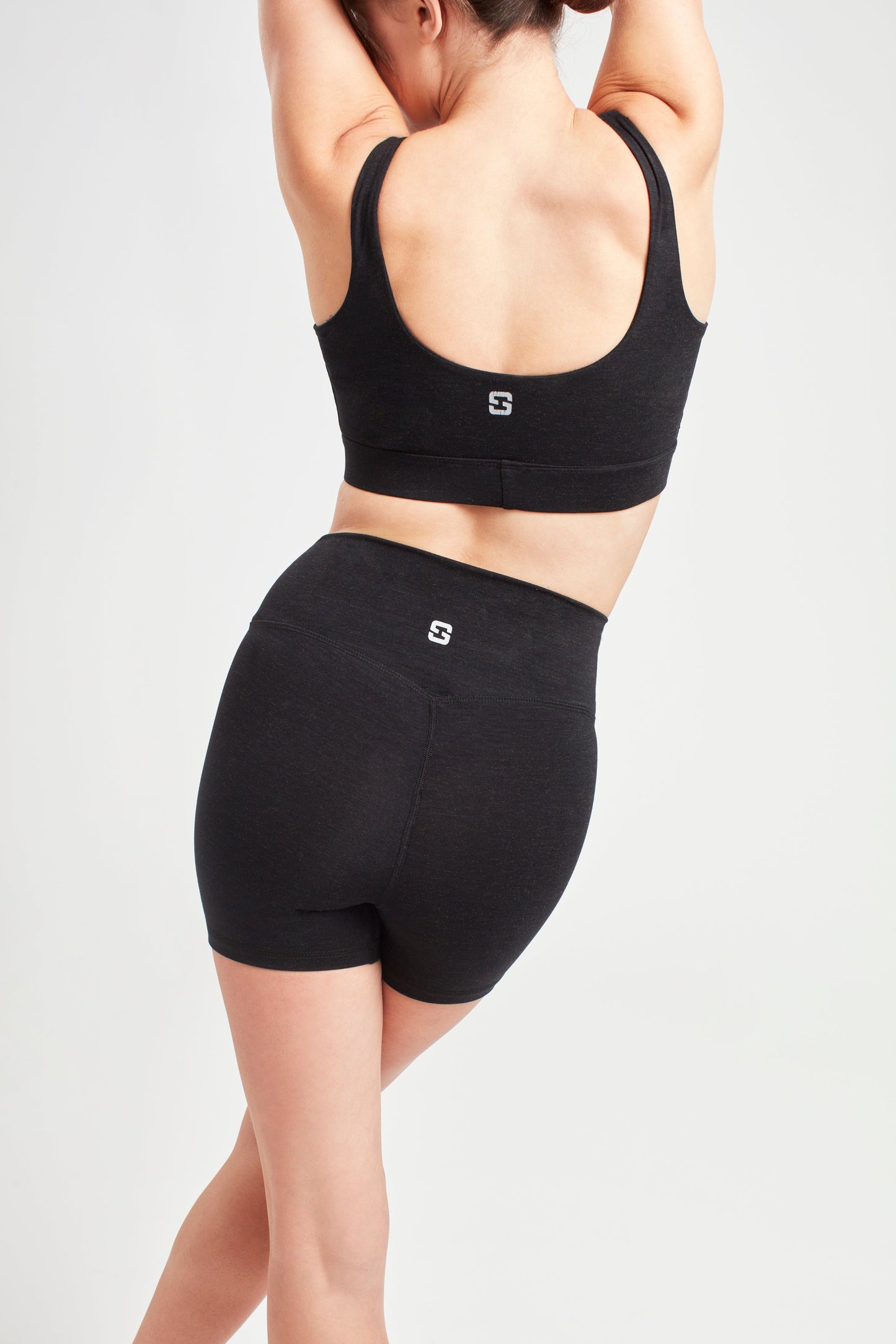 Sōma Wrap Biker Shorts. Silver. High performance fabric. High waisted. Comfortable. Stylish. Comfortable feel for loungewear. Well suited to yoga and Pilates.