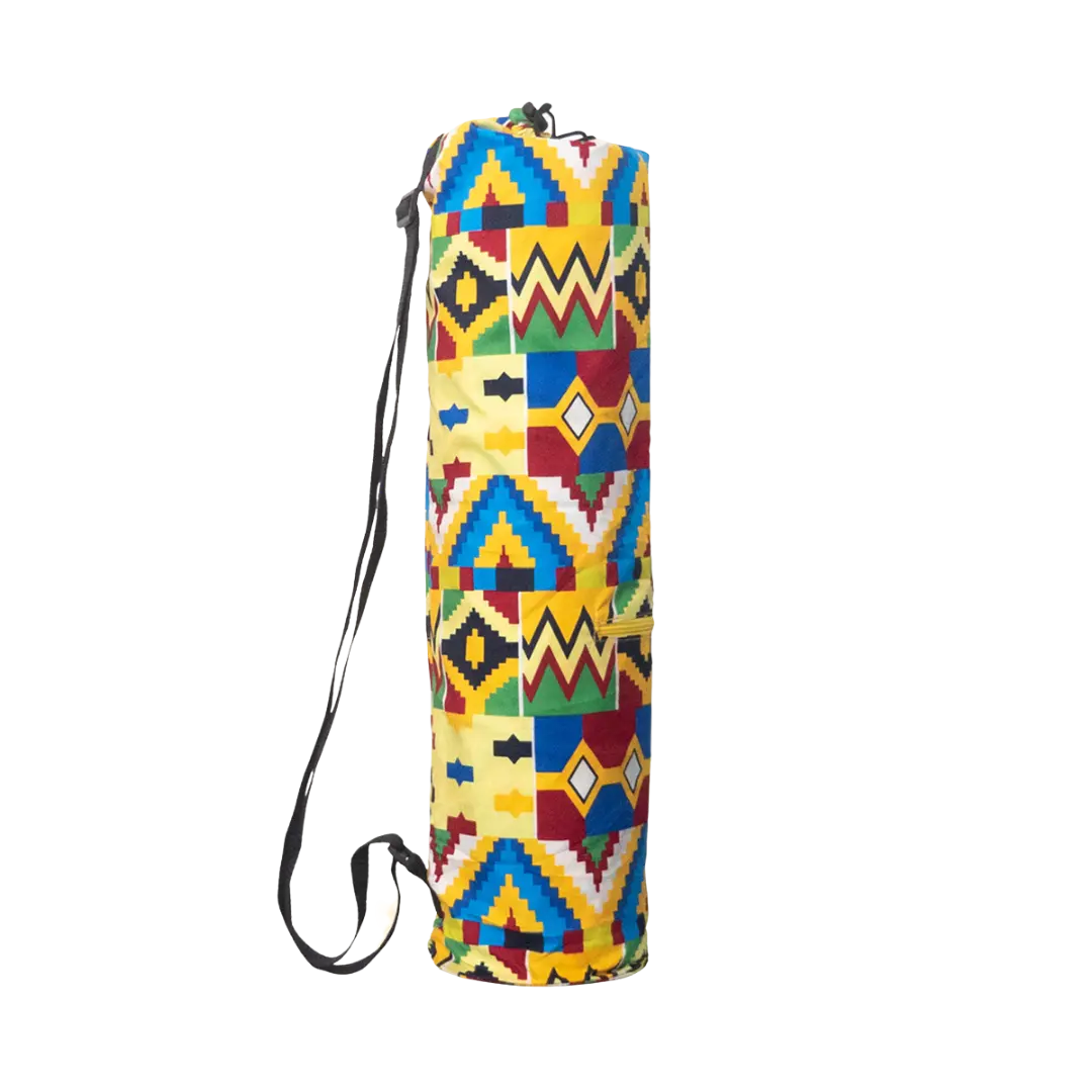 This vibrant yoga bag is handmade in Madagascar using modern African wax fabric and cotton. Designed for both functionality and flair, it features an adjustable handle for comfort and a front zip pocket for keeping your essentials close at hand.