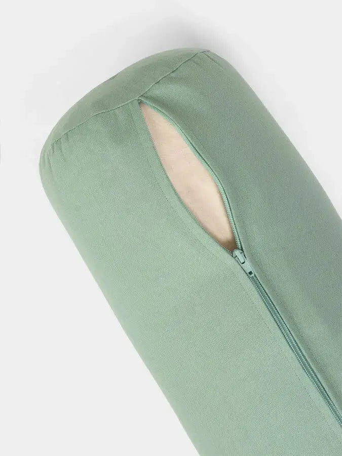 Made from 100% organic cotton, the bolster features YKK-zipped inner and outer covers, allowing it to be easily removed, washed, and re-stuffed as needed. A discreet embroidered carry handle adds convenience, making it easy to transport between home and studio.