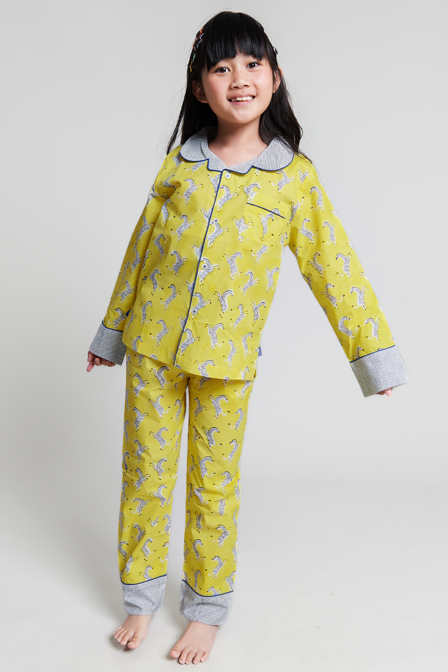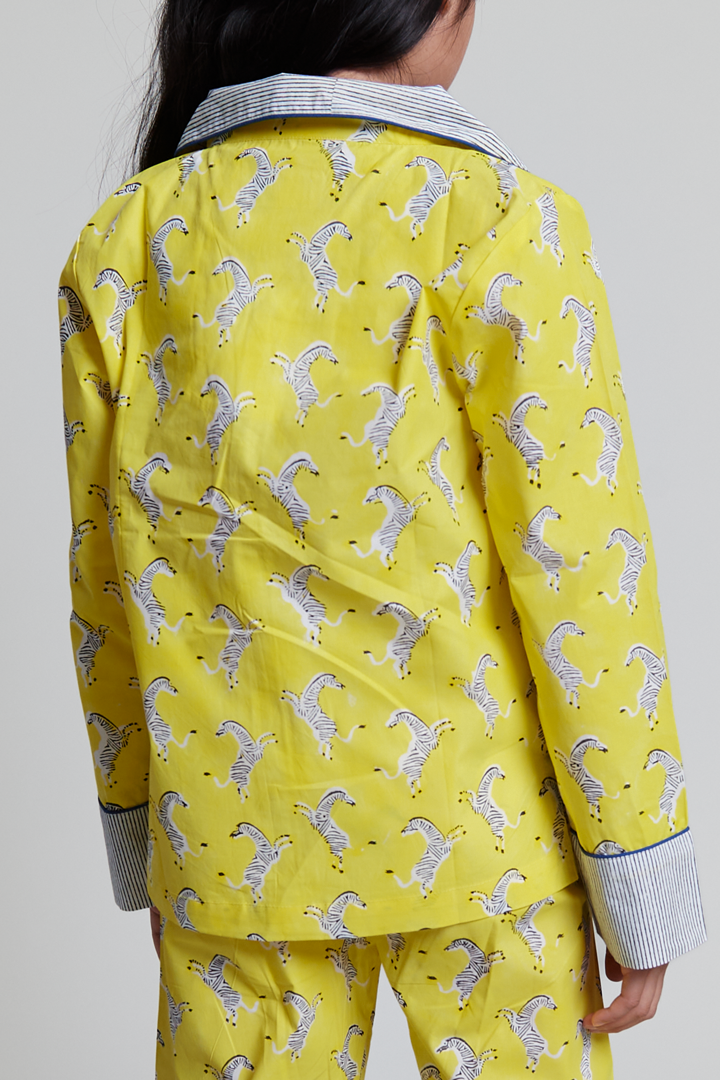 Stand out and celebrate every stride in this vibrant yellow PJ set featuring a zebra galloping off into adventure. Our PJs bring together wild prints and comfy styles, letting every kid show off their unique vibe.